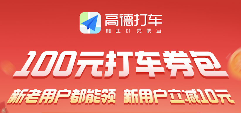 C端权益:100元打车组合券包,新用户打车最高立减10元。